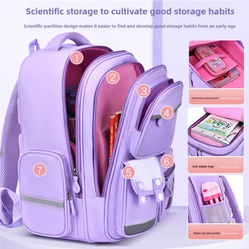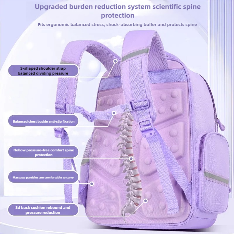 This Lightweight Spine-Protection School Backpack is specially designed for elementary students in grades 1–6. Made from high-quality waterproof polyester with a physiological curve back system, it effectively reduces shoulder pressure and supports healthy posture.